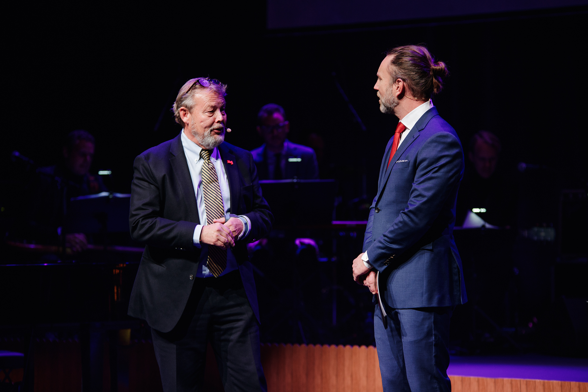 Samhalls styrelseordförande Erik Strand äntrade sedan scenen och levererade ett i raden av många starka tal under kvällen.