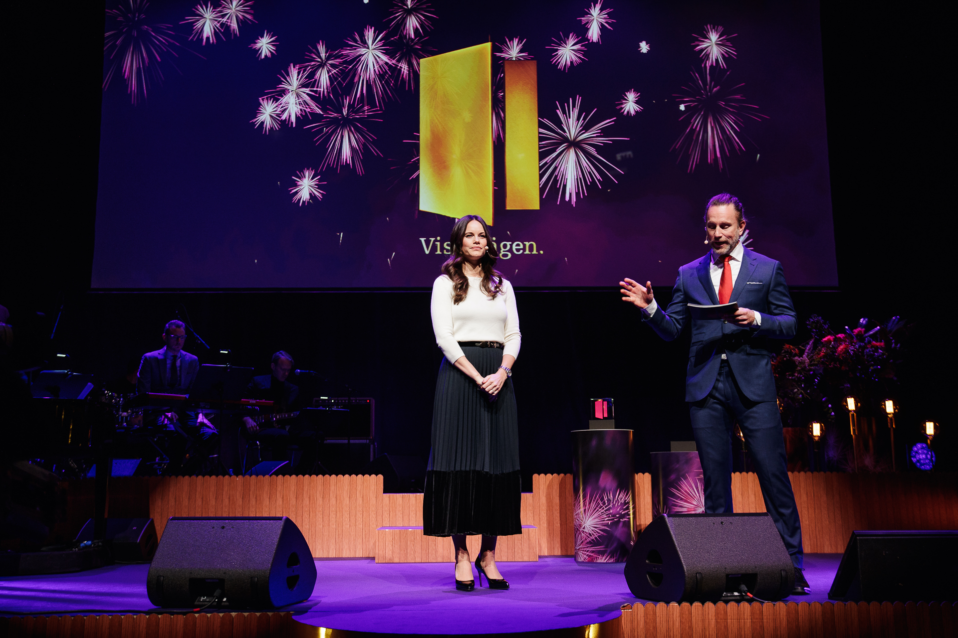 Därefter bjöd han upp prisutdelaren till årets eldsjäl på scenen: Prinsessan Sofia. Prinsessan började med berättade om Prins Carl-Philips och Prinsessan Sofias Stiftelse som startades på deras bröllop och som bland annat jobbar för ett trevligare Internet för unga.